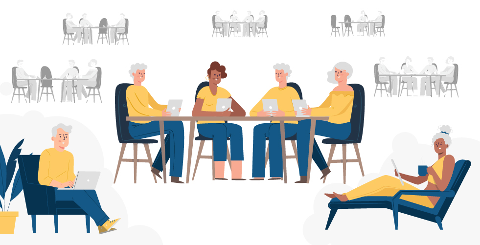 Bridgemate Play also enables you to create a fully digital club without cards and bidding boxes, but with players still gathering in person. As the location of the players is irrelevant for Bridgemate Play, they can also be located at the club. Players sit with their partner and opponents at the same table and enjoy the usual table interaction, but use tablets to play the game. Of course, online players can also participate from any location elsewhere, creating
