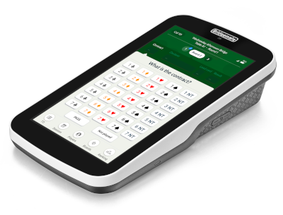 Modern full-colour touchscreen Bridgemate III scoring device. Robust and easy to use device for quick and straightforward scoring of all your bridge games.